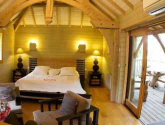 Amongst the almond branches, you will approach your treehouse hideaway via a 30 m long wooden footbridge, beautifully lit at night. Set on stilts, 3 m up in the air, it has a bay window that will offer you varied and exceptional views! On the spacious terrace, sunny in both summer and winter, you will appreciate the heated Jacuzzi spa bath surrounded by the music of cicadas.