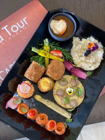 Petit-déjeuner livré à la cabane, un repas traiteur sur commande uniquement du lundi au samedi soir.