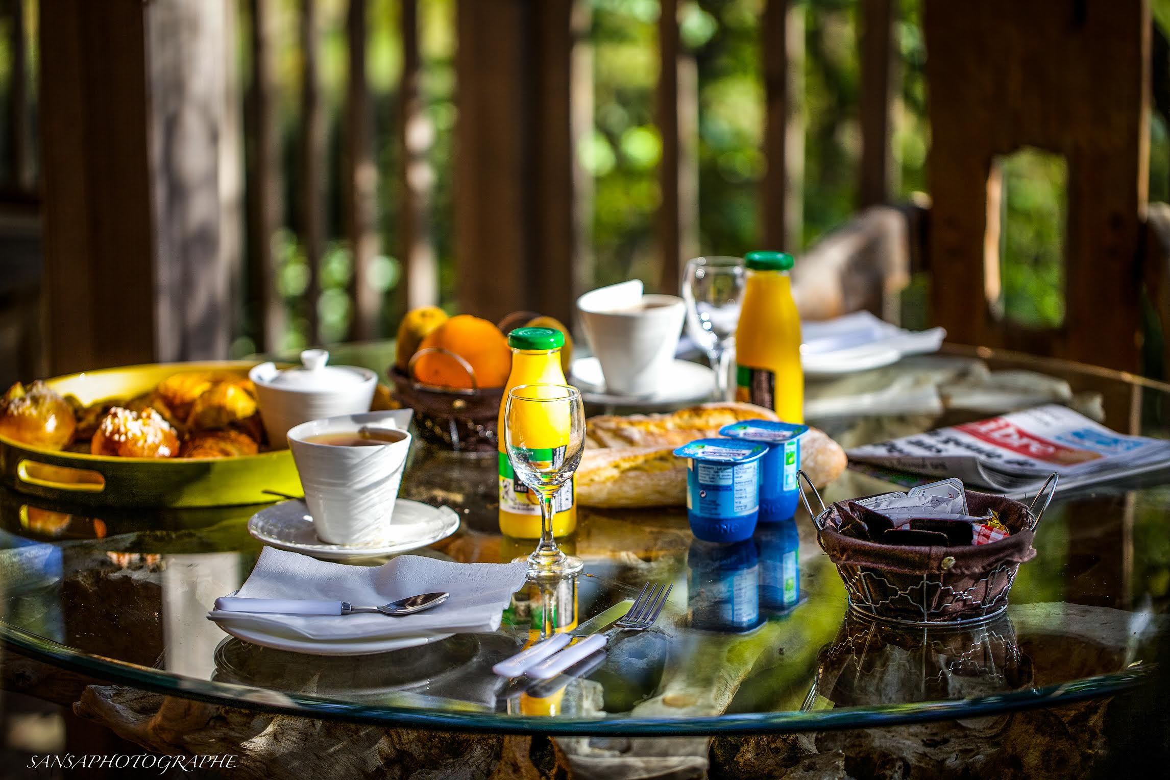 Plaisir et bonheur ultime ! Un copieux et délicieux petit déjeuner traditionnel inclus dans votre séjour, vous sera hissé sur la terrasse à heure convenue. C’est tellement agréable de se lever, et se délecter avec des viennoiseries, du pain, rehaussé de confitures pour une note sucrée naturelle, de fruits frais, de yaourts et de jus de fruits … … et en plus, café, thé, chocolat, sont à votre disposition dans la cabane.