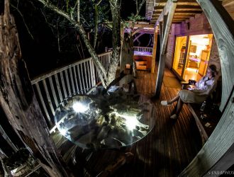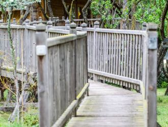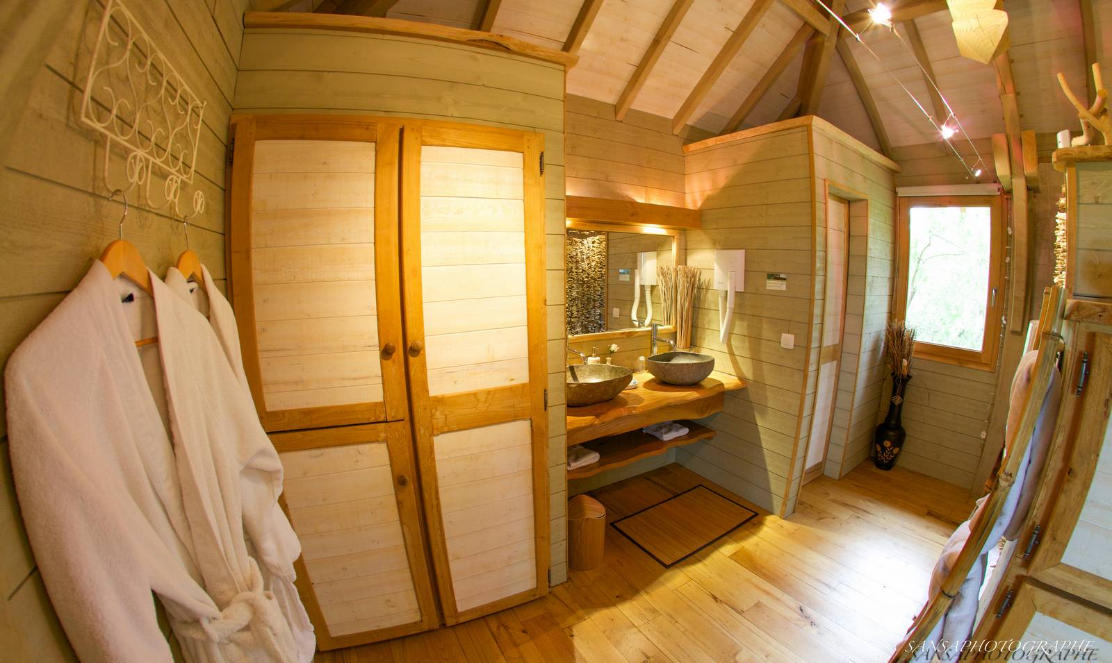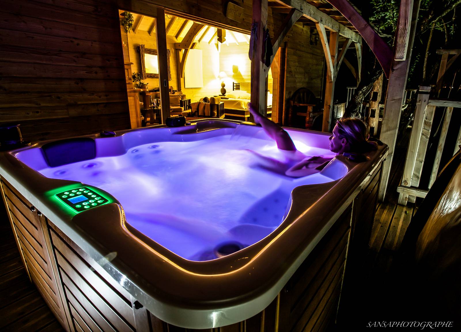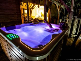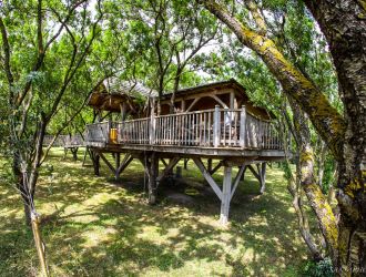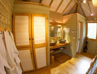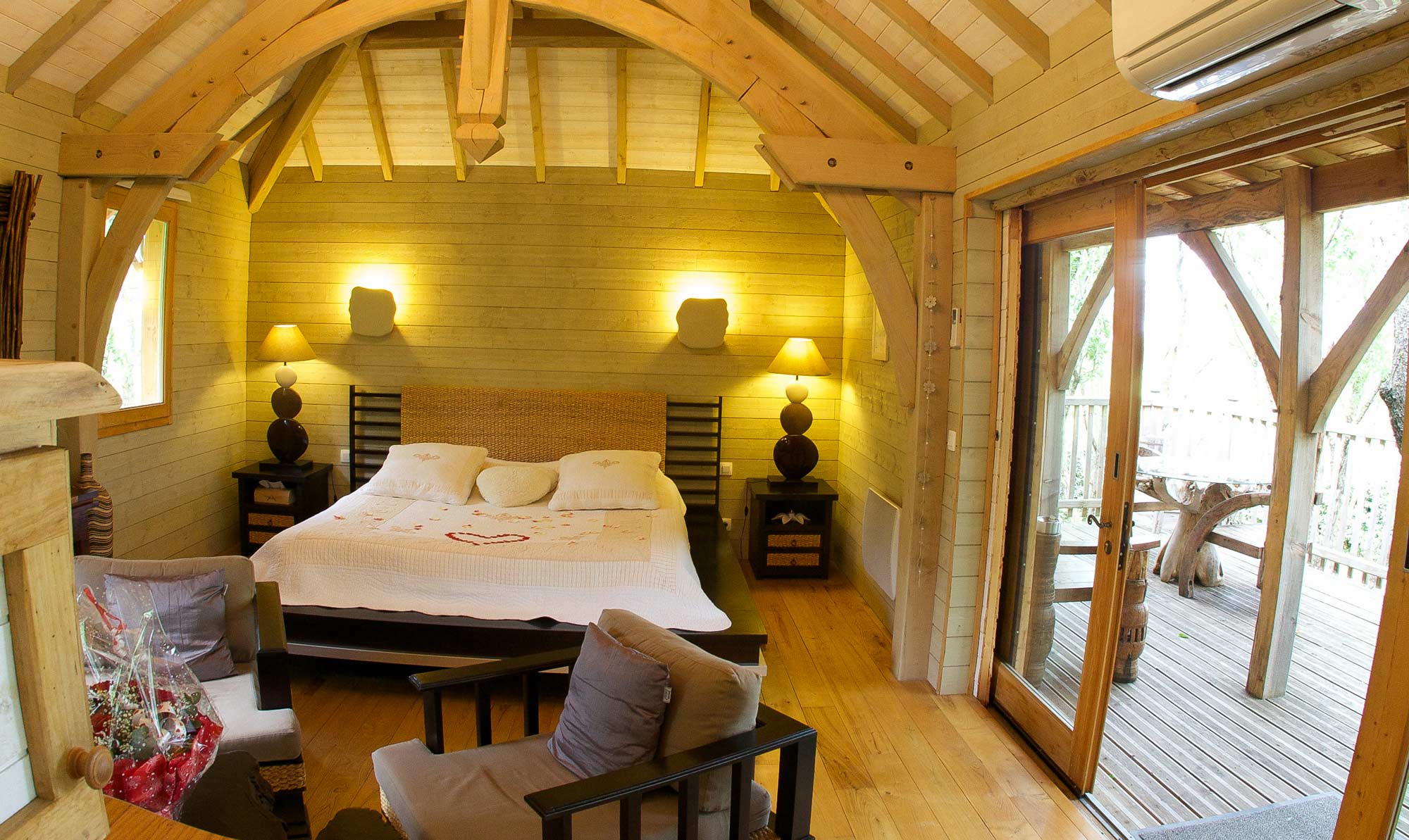 Amongst the almond branches, you will approach your treehouse hideaway via a 30 m long wooden footbridge, beautifully lit at night. Set on stilts, 3 m up in the air, it has a bay window that will offer you varied and exceptional views! On the spacious terrace, sunny in both summer and winter, you will appreciate the heated Jacuzzi spa bath surrounded by the music of cicadas.