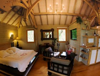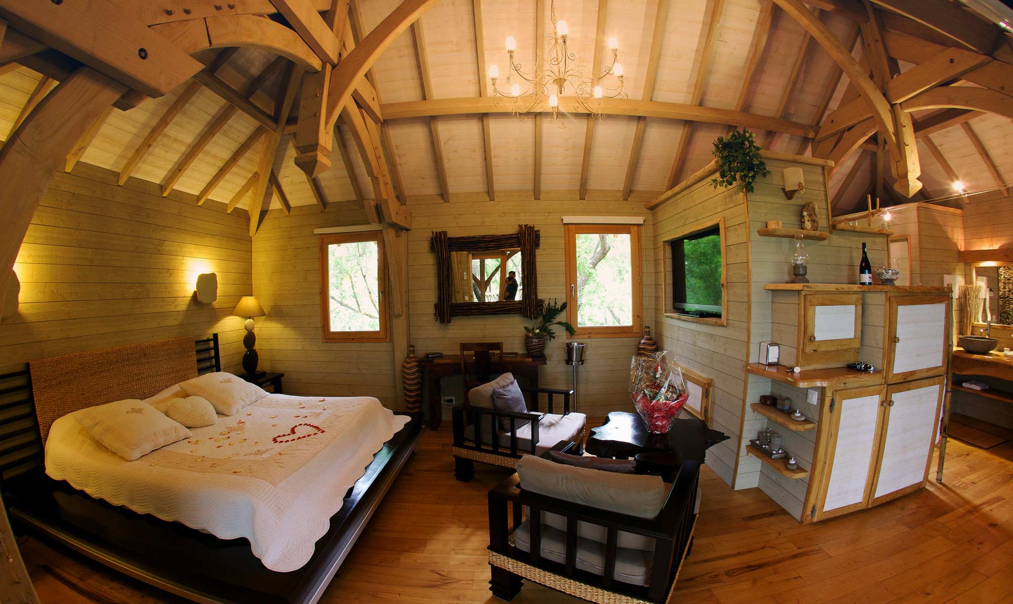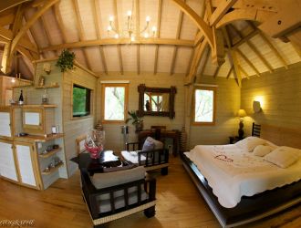 Set in the middle of almond trees, the luxury treehouse is close to beautiful beaches and the Pyrenees Mountains. Specially designed for lovers, it includes a spacious terrace on which a private spa for 2 people awaits you. Look out over fields of wheat and poppies and watch squirrels playing in the trees. Peace, calm and sensuality are the order of the day in this luxury cabin perched in the trees. Inside, wood is omnipresent, in the furniture and the very design of the treehouse. All are in synergy, taking root in the midst of almond trees and pines. Discover this splendid wooden treehouse in all its beauty and authenticity.