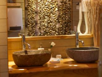 Inside, you will be transported into an elegant universe, infused with sensuality by the Asian style decor. A comfortable air-conditioned cocoon, with chestnut parquet flooring throughout, a spacious bedroom with a king size bed and a lounge area with mini-bar, flat screen TV and Wi-Fi. There is also a bathroom with two natural stone basins and a spacious Italian shower large enough for two.
